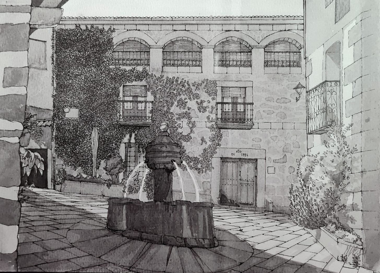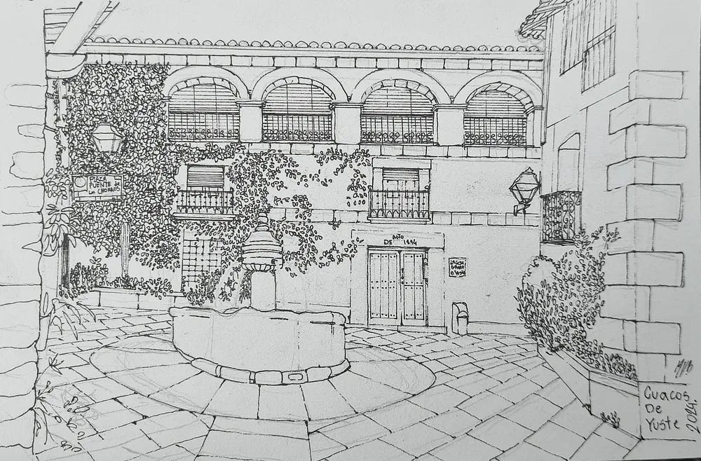 A few weeks ago I had the opportunity to sketch the scenery below at the beautiful Cuacos de Yuste while on holidays in Spain.